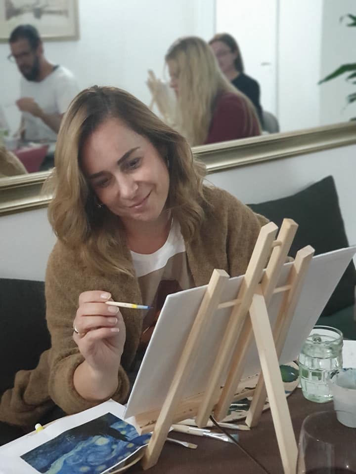Naše novo druženje je u Tuzli u petak i subotu naveče 20. i 21. novembra 2020. od 18h-21h. Zajedno ćemo se zabaviti i ujedno kreirati umjetnost opustiti se, vježbati sadašnji trenutak i povezati u zajednici sličnih uz slikanje i kuhano vino! Ne treba vam nikakav prethodni trening ili talenat da slikate s nama već samo spremnost da slikate poput djeteta, sa slobodom i osjećajem znatiželje, usredotočeni na proces stvaranja, a ne na ishod na platnu.